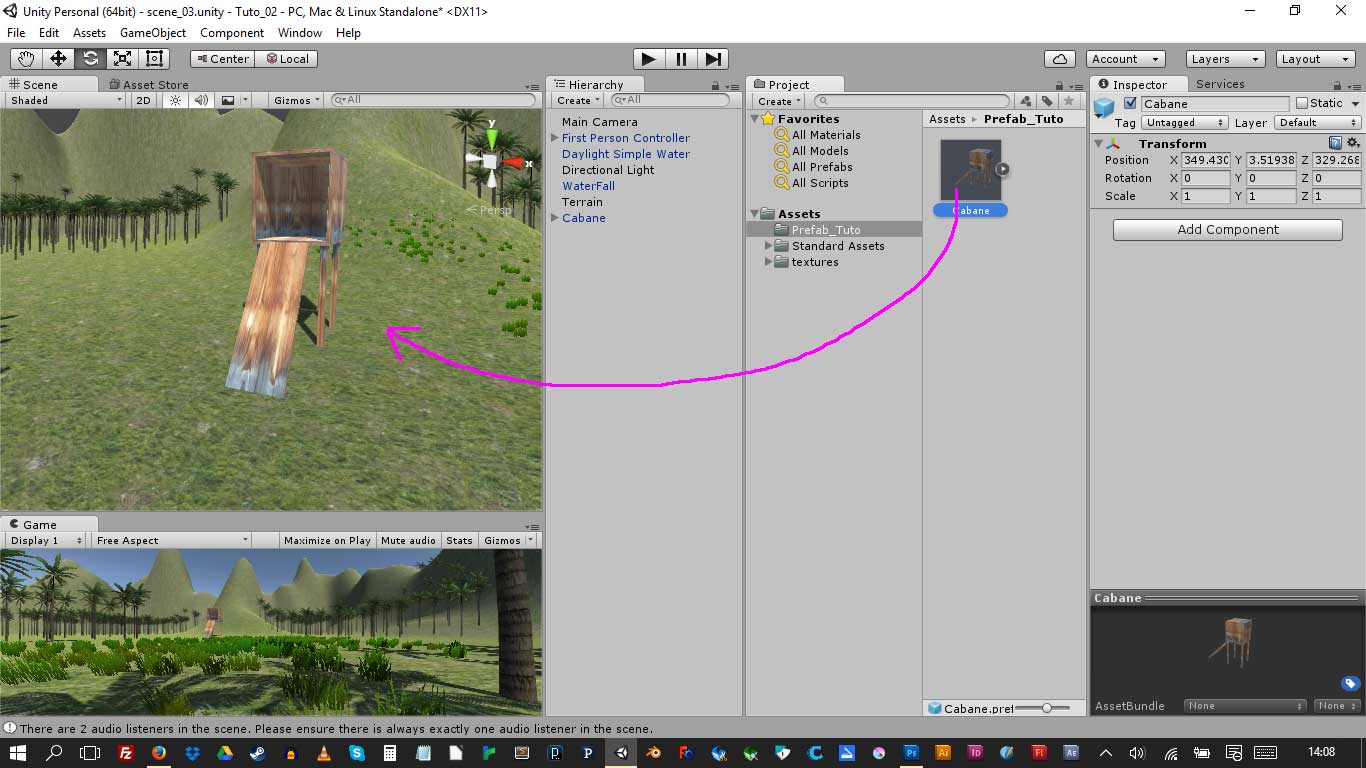 2. Glissez le dossier Cabane dans Prefab_Tuto