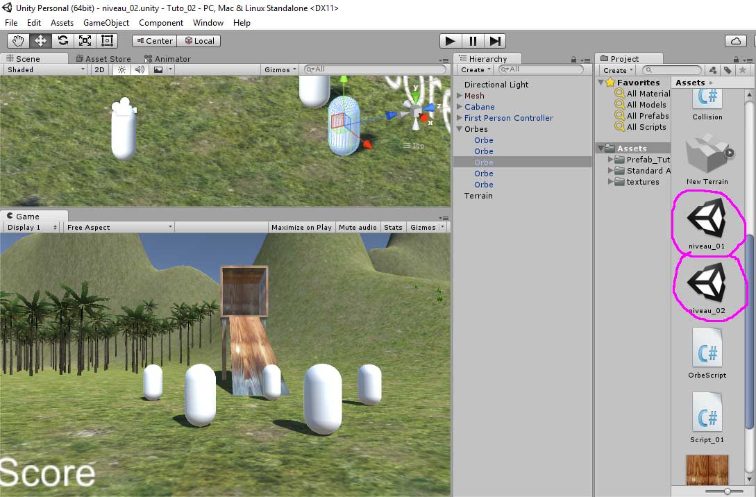 Nous allons changer de niveau dès qu'une condition sera remplie: “ramassage de 5 orbes”.
